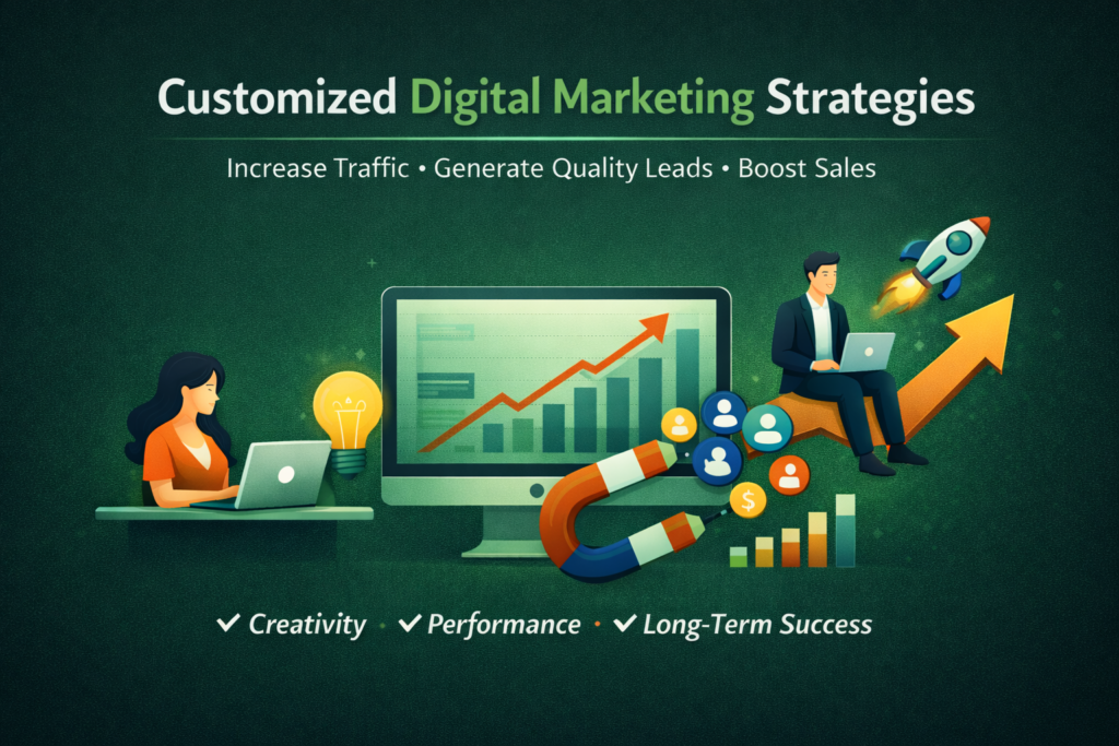 We create customized digital marketing strategies designed to increase traffic, generate quality leads, and boost sales. Our approach is focused on creativity, performance, and long-term success.
